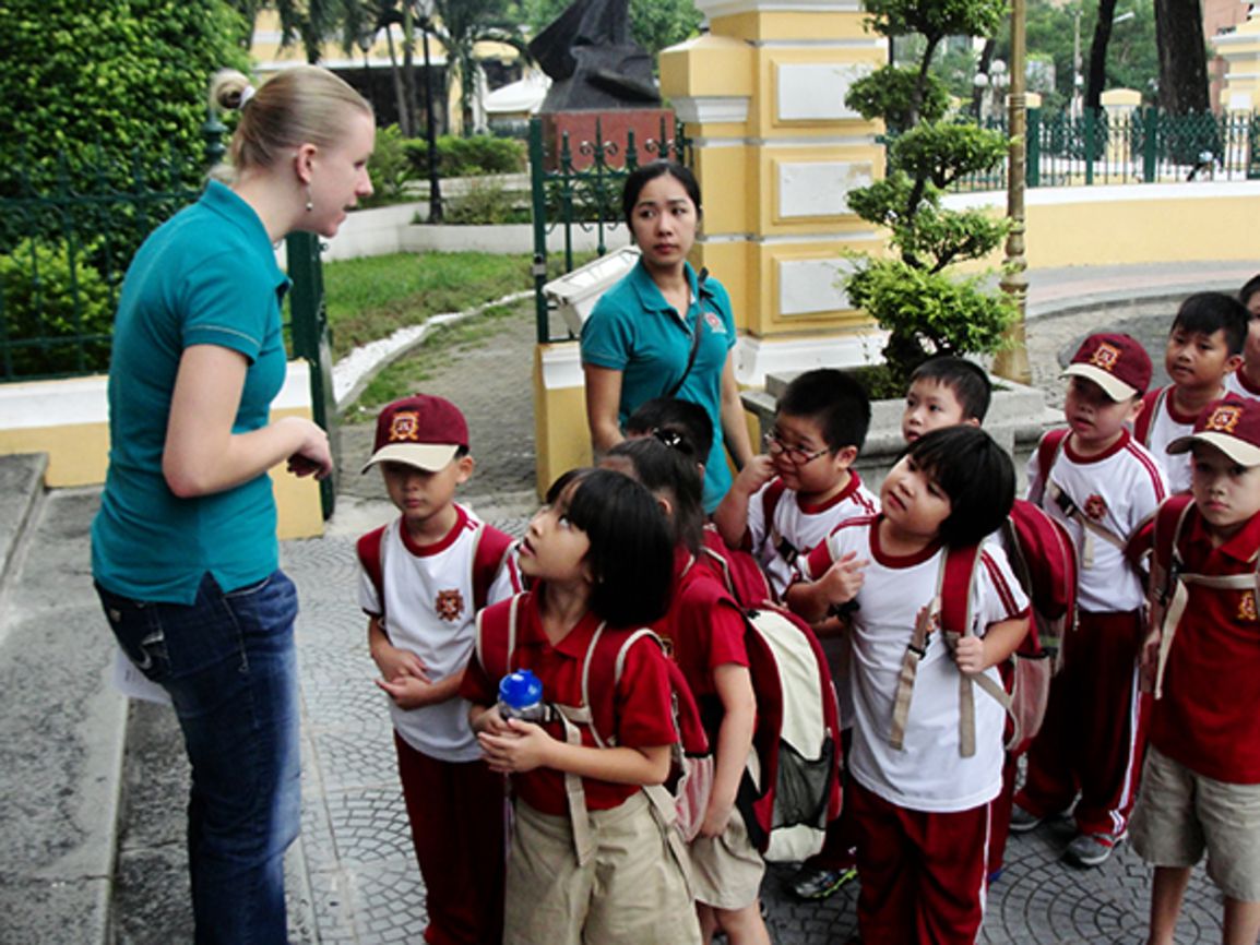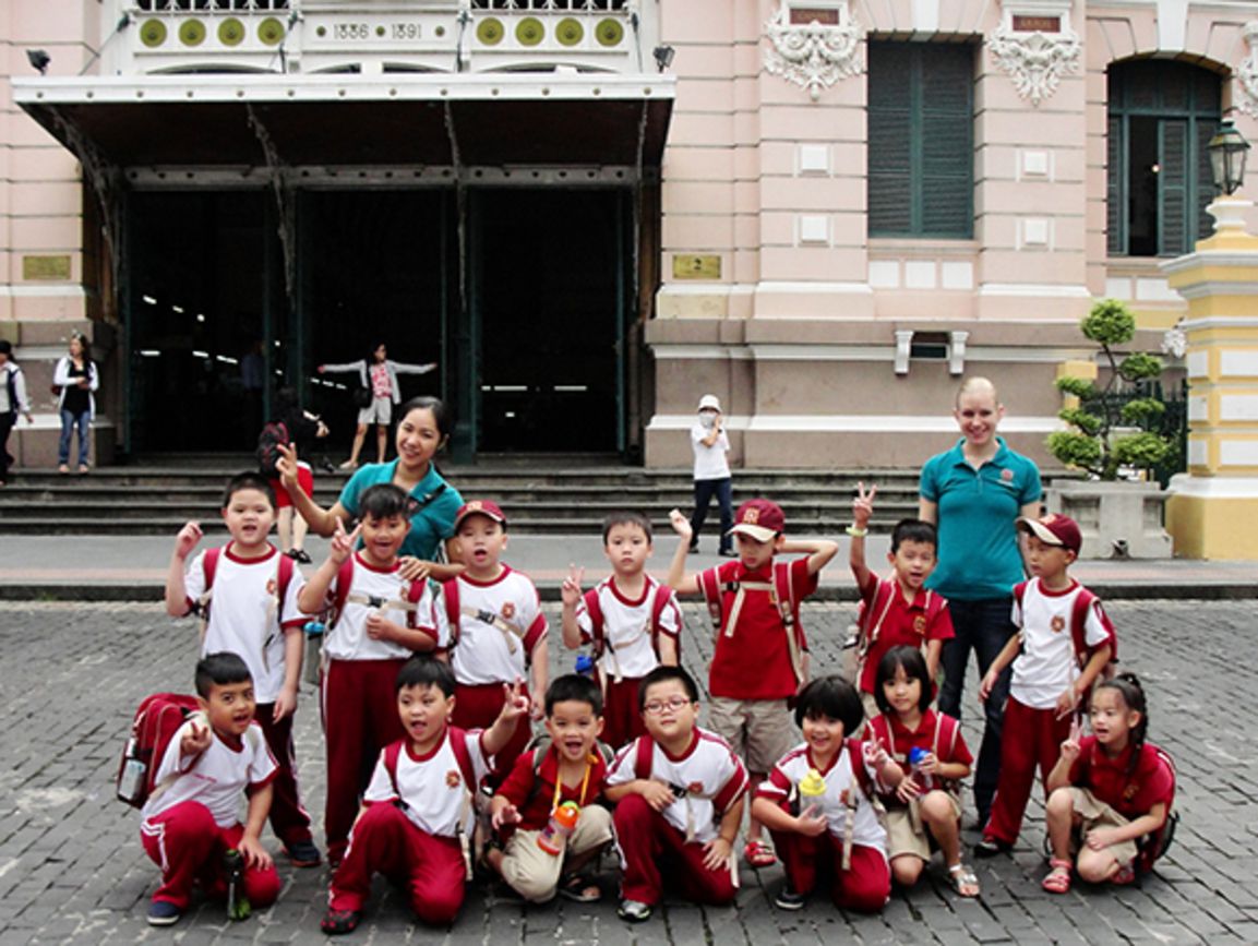 Tuần lễ cuối tháng 7, các học sinh Trung học cùng các thầy cô nước ngoài có chuyến đi hào hứng tham quan thành phố trong khuôn khổ chương trình Cambridge nhằm tìm hiểu lịch sử Sài Gòn. Ngoài các điểm đến quen thuộc như Bưu điện Thành phố, nhà thờ Đức Bà, nhà hát lớn, các bạn nhỏ đã đến Bảo tàng Mỹ thuật Thành Phố và cùng thưởng thức các tác phẩm nghệ thuật của nhiều trường phái khác nhau. Chuyến tham quan nửa ngày tuy ngắn ngủi nhưng đã mang lại không khí học tập môn lịch sử và nghệ thuật mới, giúp các em thêm yêu quý thành phố mang tên Bác.
