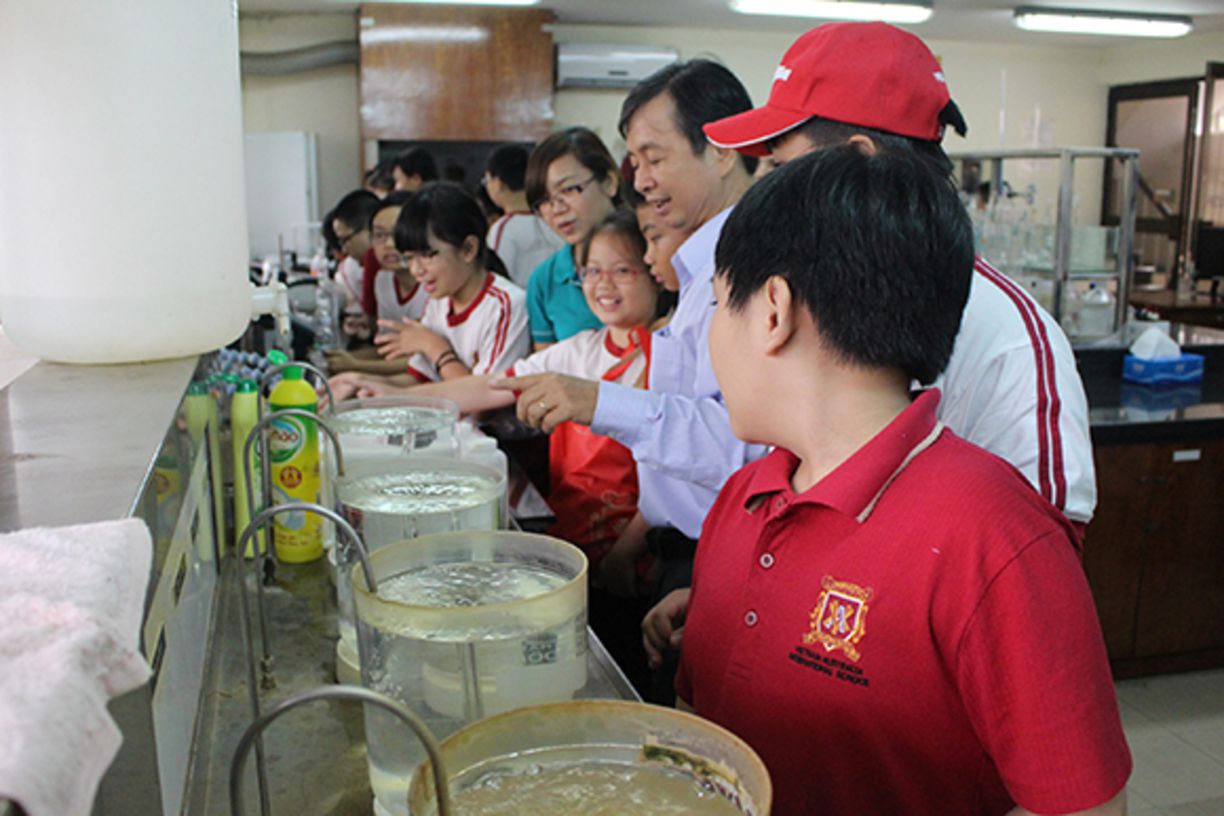 Ngày 7, 20 và 24/7/2014, học sinh Trung học có chuyến tham quan thực tế tại nhà máy nước Bình Dương và nhà máy nước IonLife, Long An với sự đồng hành của các giáo viên nước ngoài. Tại nhà máy, học sinh thực hành các thí nghiệm về tính năng, tính chất và lợi ích của nước có tính kiềm so với nước uống thông thường qua sự hướng dẫn cặn kẽ của các thầy cô, trực tiếp tham quan quy trình sản xuất nước sạch, mô hình hoạt động của nhà máy nước. Chuyến tham quan mang lại những kiến thức đời sống thực tiễn, giúp các em hiểu thêm về nguồn nước các em đang dùng hàng ngày và tầm quan trọng của việc bảo vệ môi trường và giữ gìn nguồn nước sạch.