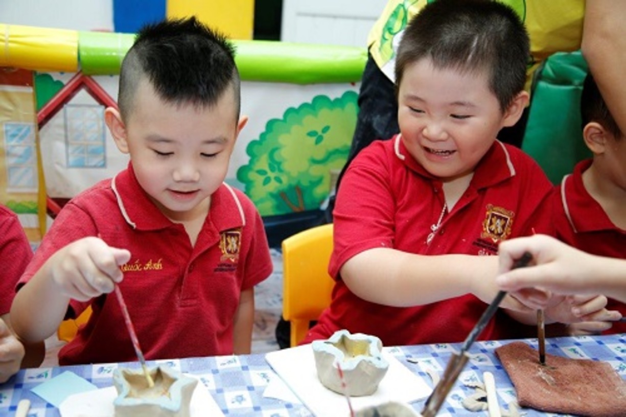 Ngoài các chuyến dã ngoại nửa ngày tham quan nhà máy Yakult, xem múa rối nước…, mùa hè này các bạn nhỏ Mầm non VAS cũng được thử nghiệm một môn nghệ thuật mới, đó chính là làm gốm. Đây là một sự kết hợp giữa nghệ thuật điêu khắc và hội họa khi tạo hình và trang trí cho sản phẩm. Các bạn nhỏ đã rất hứng thú khi lần đầu làm quen với đất sét, cọ, những sắc màu và mang về thành phẩm là những chậu hoa xinh xắn.